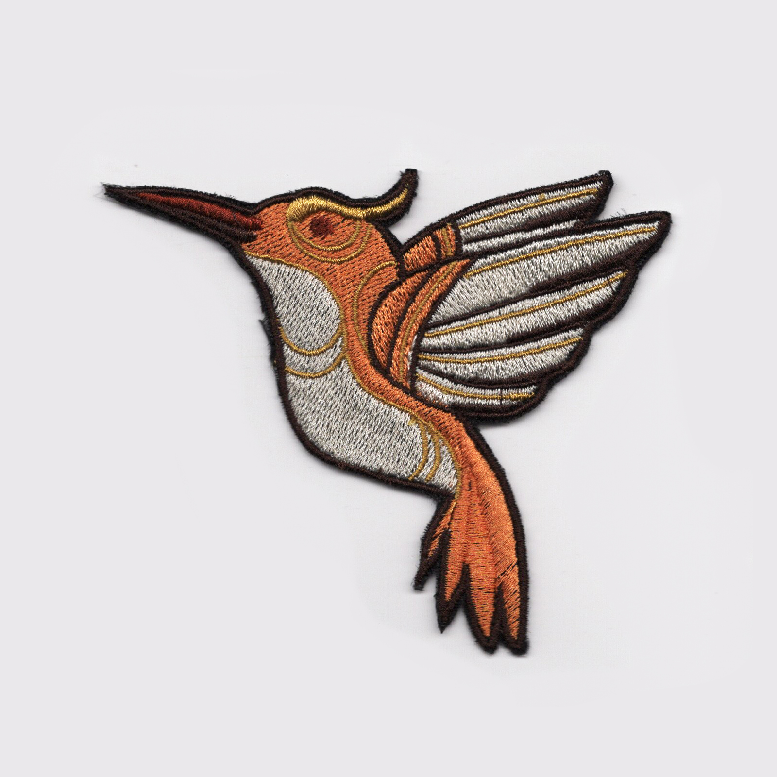 Parche bordado a maquina, con adhesivo térmico para planchar en prenda.